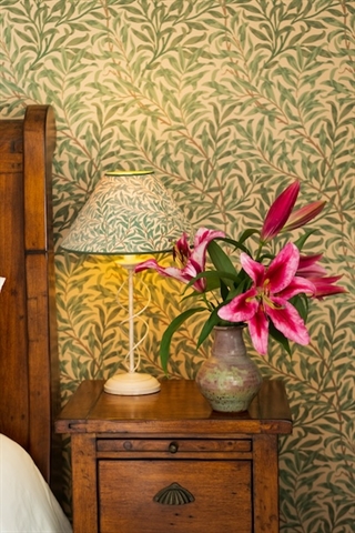 The room is at the front of the house and overlooks the stream and Little Petherick bridge. It has been decorated using genuine artefacts and contains an original mantled fireplace.